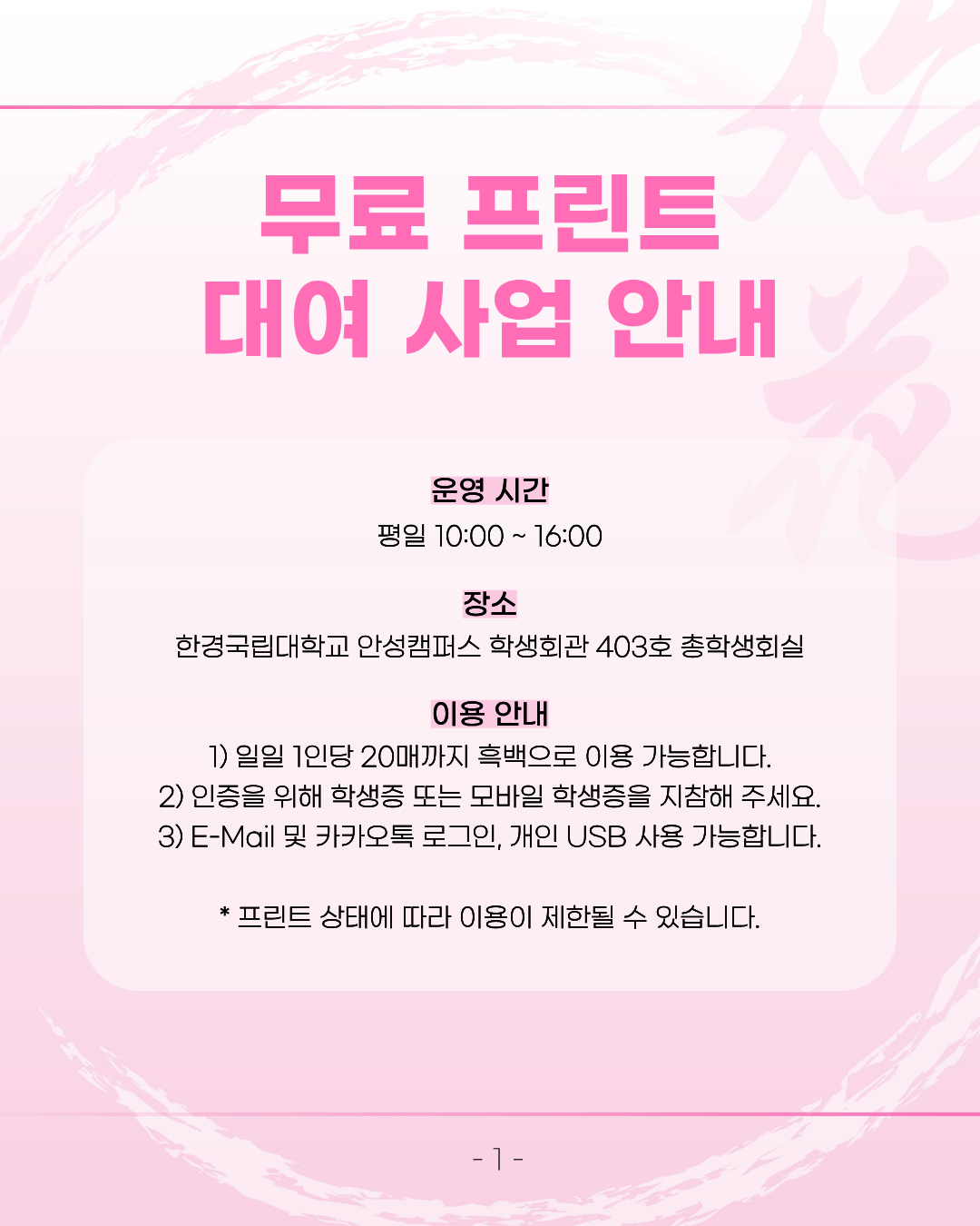 - 일일 1인 20매까지 흑백으로 이용 가능합니다.
