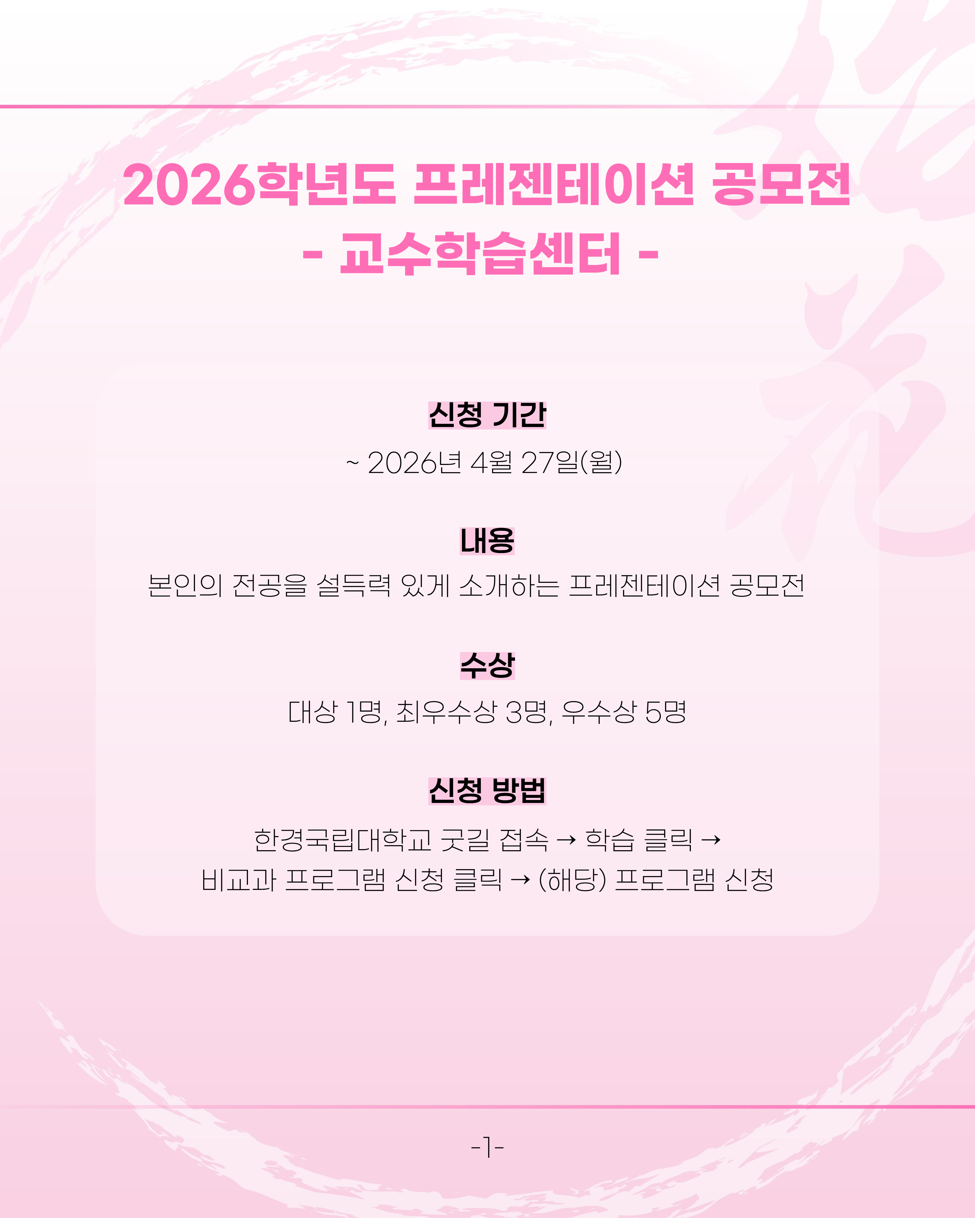 1. 2026학년도 프레젠테이션 공모전 - 교수학습센터