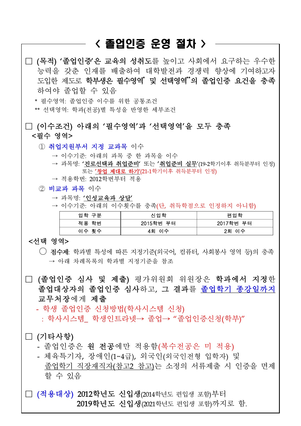 졸업인증 운영절차