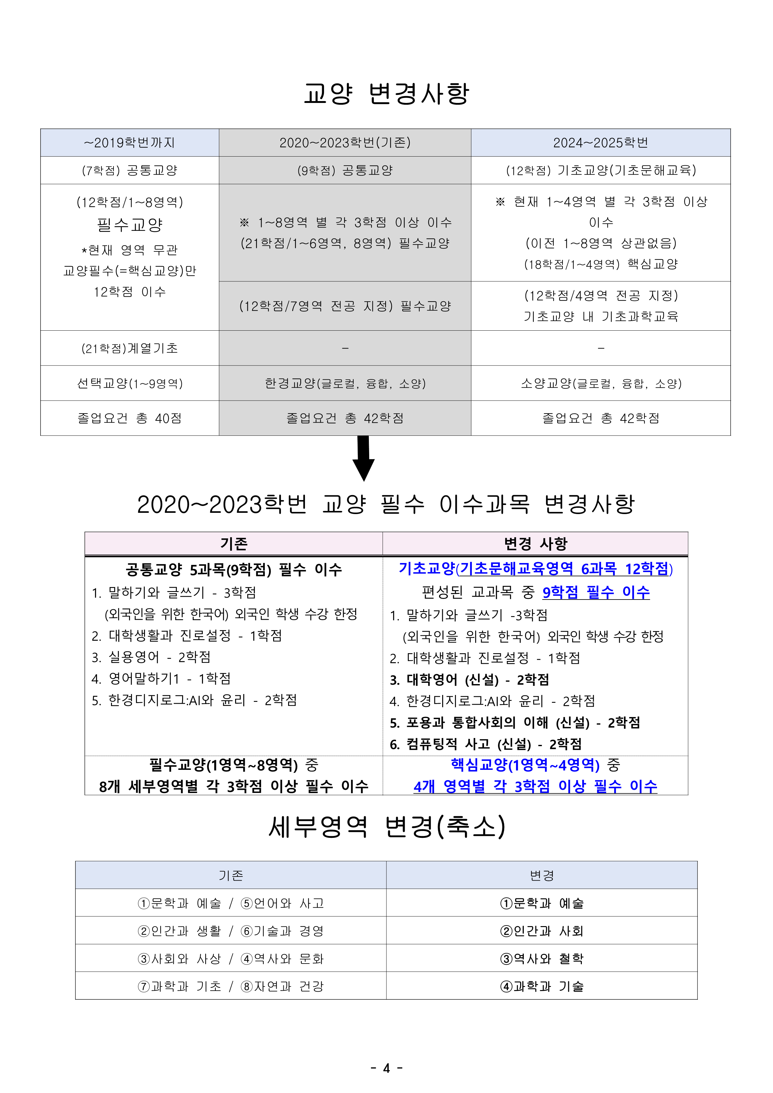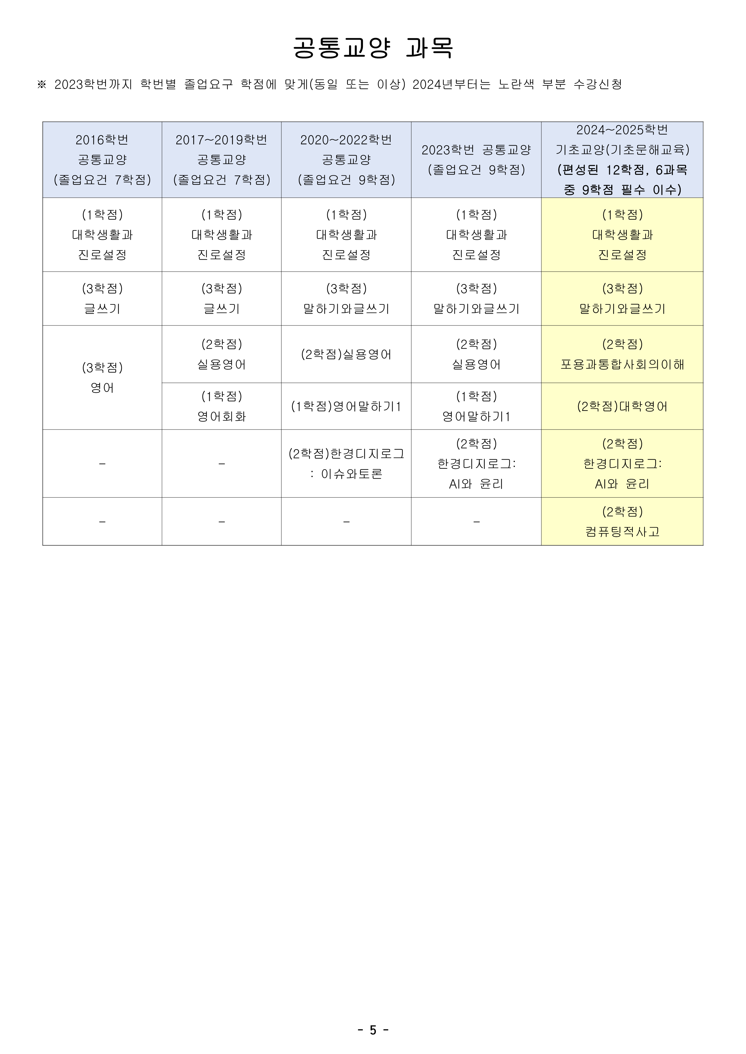 학번별로 졸업에 필요한 교양과목을 총정리하였으니 참고하시기 바랍니다.