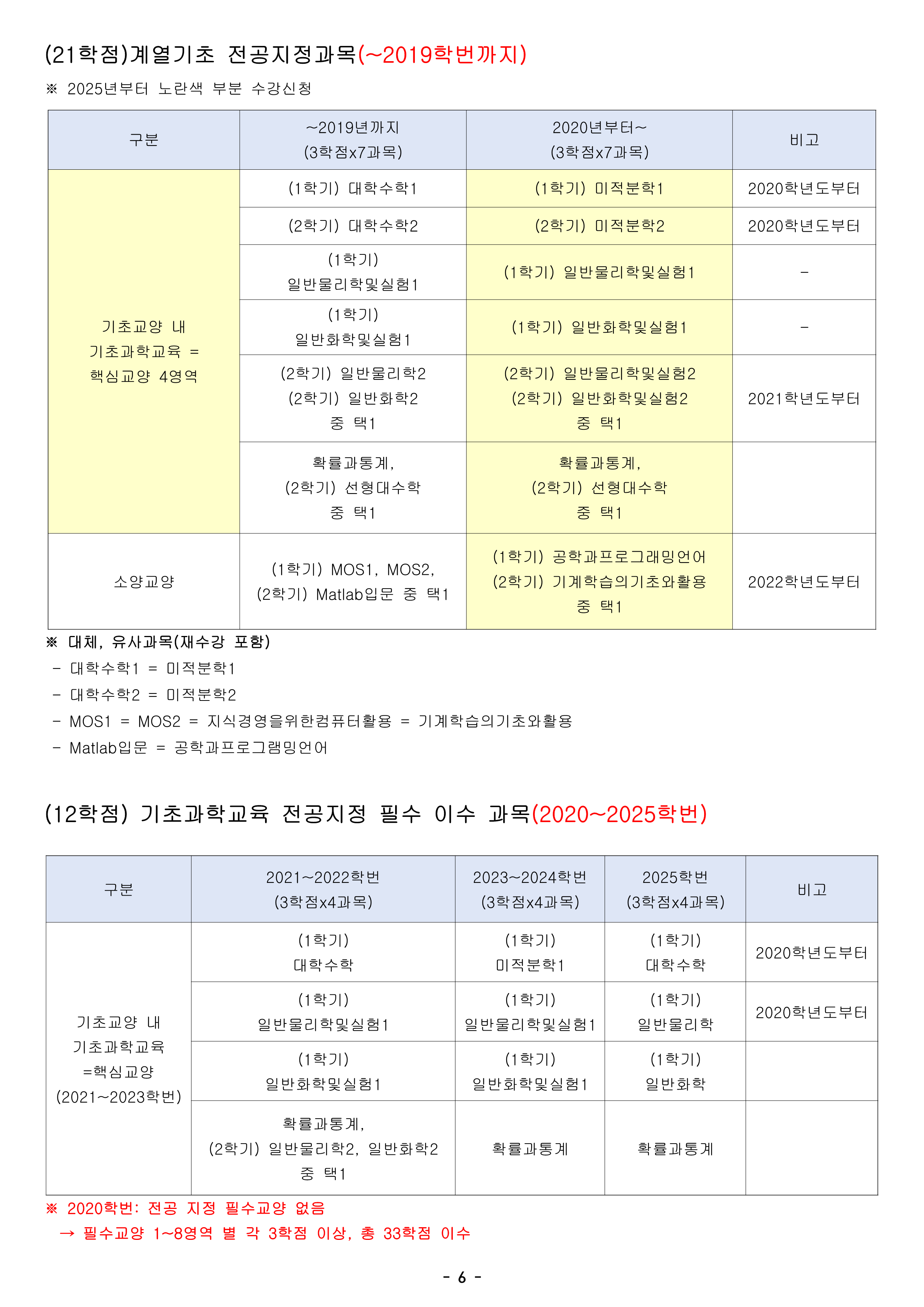 매년 교양 교육과정이 개편되고 있어서, 몇 학번이 몇 년도에 이수하였는지에 따라 조금씩 인정되는 범위가 달라지므로 유의하여 수강해주시기 바랍니다.