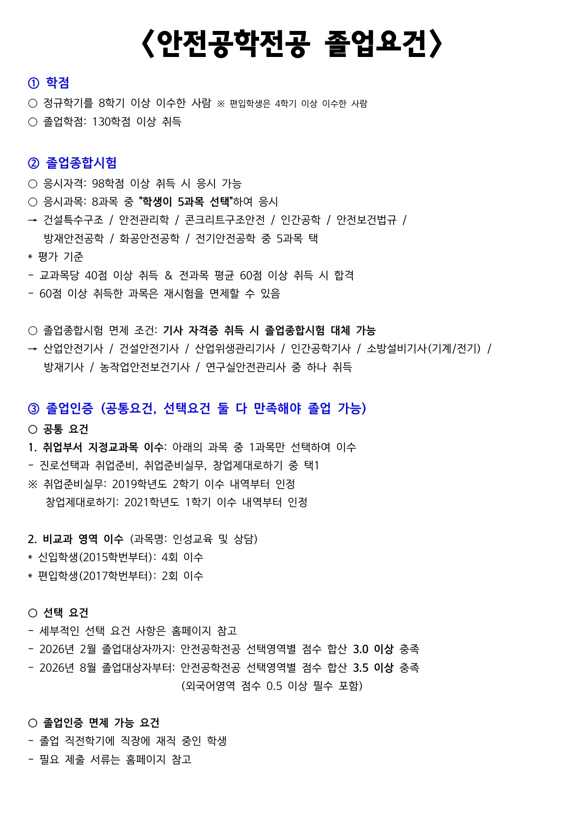 ★안전공학전공 졸업요건 한 장 요약★