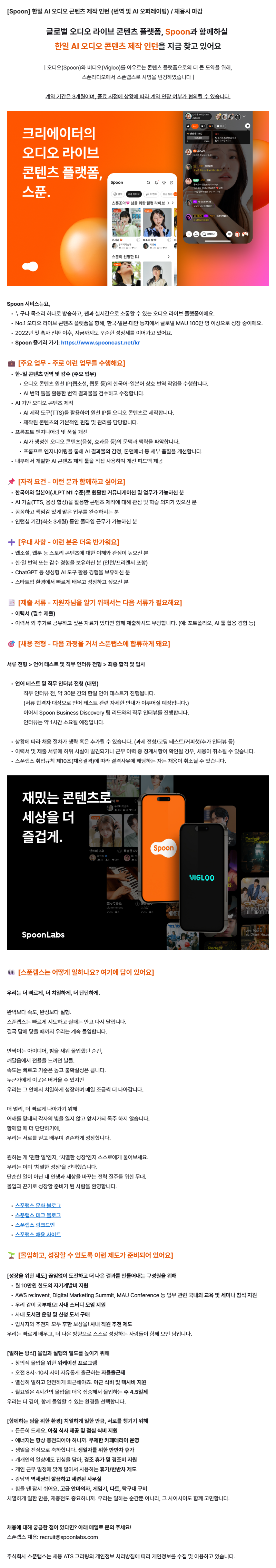 [취업] [스푼랩스] 인턴 채용 공고