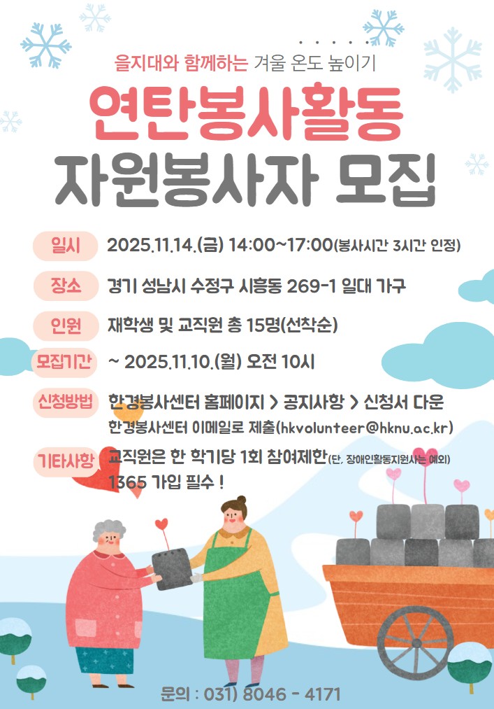을지대와 함께하는 연탄 나누기 봉사활동 참여자 모집