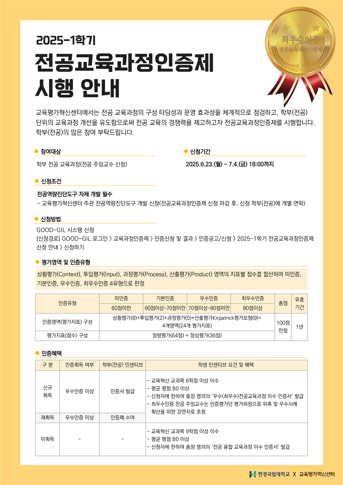 [교육평가혁신센터] 2025-1학기 전공 교육과정인증제 신청 안내
