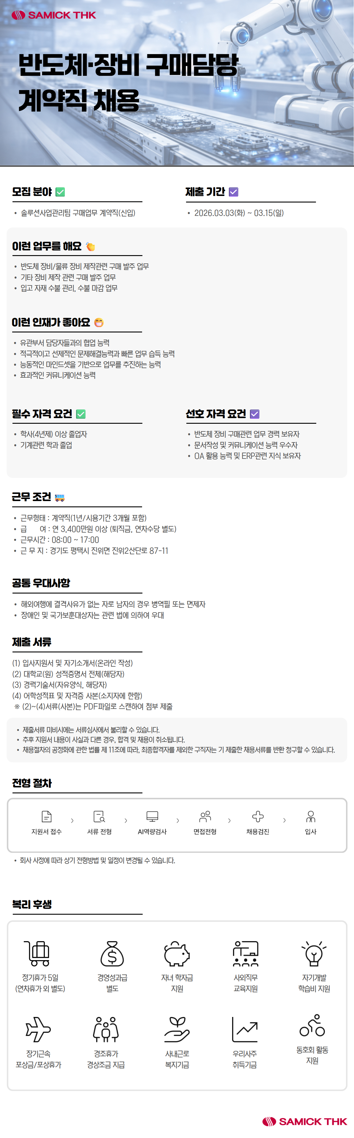 [취업] (삼익THK) 반도체장비 구매담당 계약직 채용(~3.15까지)